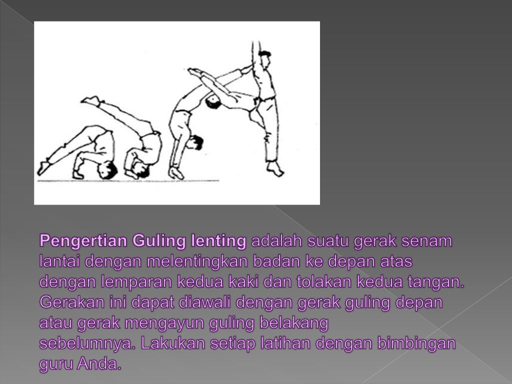 Guling lenting adalah gerakan pada senam lantai dengan melentingkan badan ke depan atas. Saat pundak menempel matras c. Sumber gerakan yang benar saat akan melakukan gerak senam lantai guling lenting (neck spring) adalah (a) pingggang. Gerakan guling lenting adalah salah satu gerakan dalam senam lantai yang banyak dilakukan pada beberapa sekolah terutama sekolah dasar. Maka dari gambaran tersebut, yang menjadi sumber gerakan adalah dorongan pinggul.